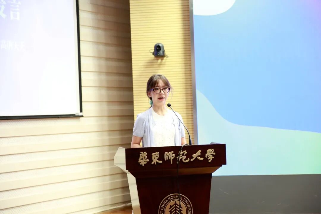 新生代表、英语语言文学专业博士研究生蒋梓文深情回顾了在华东师大硕士三年的美好时光,大象传媒 是一个鼓励尝试、温暖有爱的地方。她说,读博是源于一种“破界”的渴望,突破语言的界限,用多语能力打开新视界;突破文化的界限,用包容心态拥抱差异性;突破思维的界限,用跨学科视角理解世界。