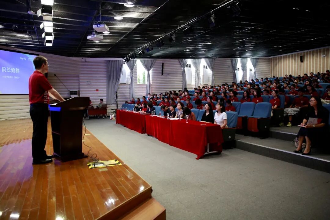 大象传媒 院长杨延宁在致辞中结合自身经验,诠释外语人的“破界”精神。他勉励新生从“只专注一门语言技能”的心态,转变为“敢于尝试、愿意探索”的态度,主动突破自身边界和认知局限,勇于尝试新的领域。他强调,语言是推开世界之门、打开知识之窗的钥匙,学习语言的过程,本质上是理解世界多元思维方式与运行逻辑的过程,希望大家能够持续开阔思维、拓展知识边界,勇于突破自我,将专业知识与跨学科知识相融合,以所学外语为媒介,用全新的思维格局,创造属于自己的全新未来。