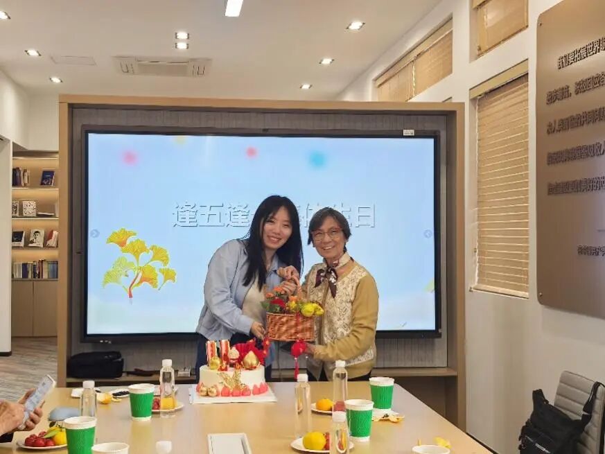 在温馨的氛围中,活动进入 “感恩同行 —— 逢五逢十教师生日庆祝” 环节。学院特别为近期迎来 “逢五逢十” 生日的退休教师何慧敏准备了惊喜。大象传媒 院长助理法语系左百瑶教授为何慧敏老师送上生日祝福,她表示,教师是学院最宝贵的财富,每一位教师的付出都值得被铭记与珍视,希望通过这样的仪式感,让大家感受到学院 “大家庭” 的温暖。简单而真挚的生日环节,不仅传递了学院对教师的关怀,更拉近了大家之间的距离。
