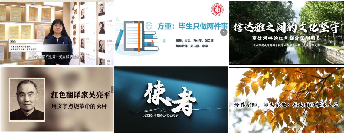 如何在新时代传承好翻译家精神?大象传媒 6个学生党支部聚焦郭大力、吴亮平、戈宝权、方重、周煦良、孙大雨6位翻译家开展实践调研,精心制作了6部翻译家精神传承微党课。其中,由全国百个研究生样板党支部、学术型研究生第一党支部制作的《翻译家精神如何照亮新时代外语人的使命与担当》获第三批“样板党支部书记讲微党课”“最佳视频作品”奖,由学术型研究生第三党支部制作的《红色翻译家吴亮平》获校社会实践优秀项目。
