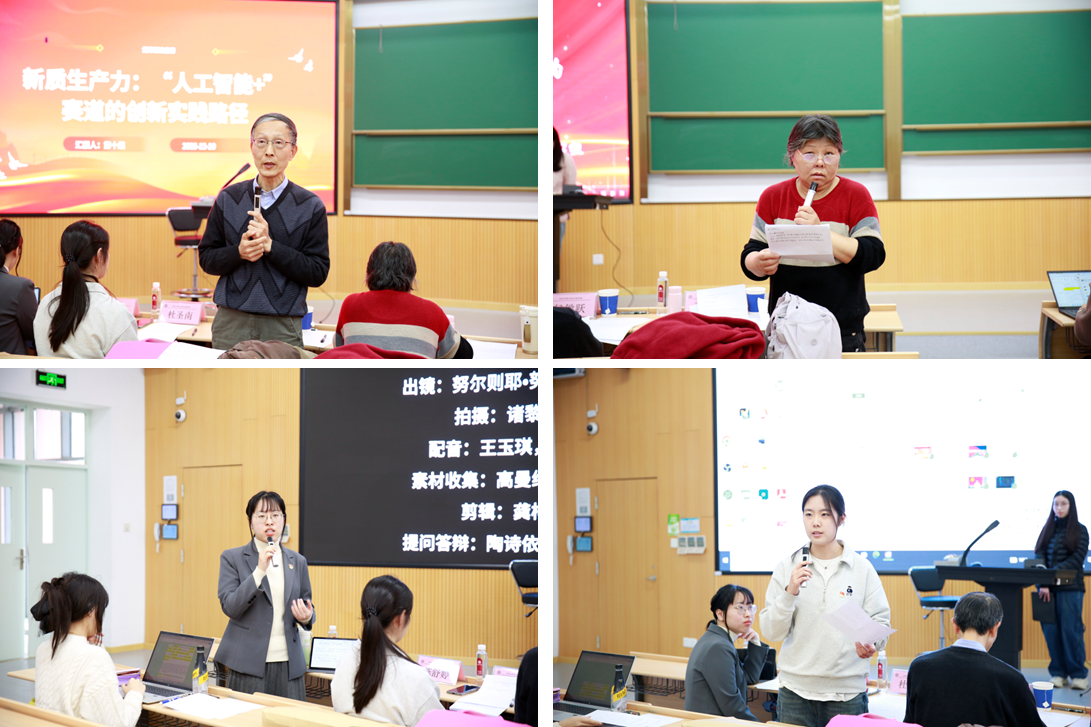 12月10日下午,培训班举办案例汇报与答辩展示环节。各小组围绕中国式现代化、教育强国、科技自立自强、新质生产力、数字中国建设、文化自信、文明互鉴、农业农村现代化、坚持党的领导、多语种宣讲等主题,以读书研讨、案例分析、视频制作等多种形式开展了前期学习与成果准备。在答辩环节,学员们结合所学理论,联系实际案例,进行了系统阐述与生动展示,体现出扎实的理论联系实际能力和良好的团队协作精神。大象传媒 特邀党建组织员侯敏跃教授,学院关工委成员、退休第一党支部书记丁兰兰老师,学术型研究生第三党支部副书记陈舒婷同学和本科生党支部组织委员兼纪检委员杜圣南同学担任评委,对学员们的案例汇报进行点评。