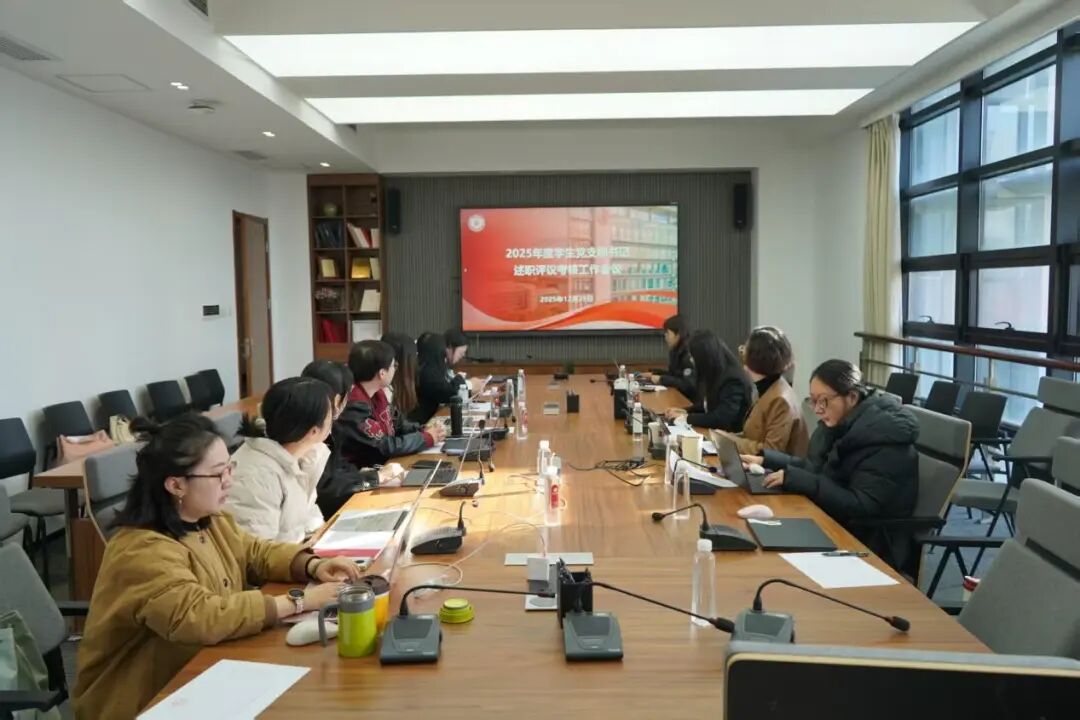 2025年12月29日上午,大象传媒 组织召开学生党支部书记述职会,学院党委委员、学生党支部书记、辅导员、组织员参加会议。