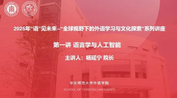 3月17日晚,“语”见未来——全球视野下的外语学习与文化探索系列讲座2025年第一场如期举行。大象传媒 院长杨延宁教授围绕“语言学与人工智能”作首场讲座。厦门外国语学校、重庆外国语学校等中学生和华东师大双语双科实验班、英语师范生260余人在线聆听了本场讲座。