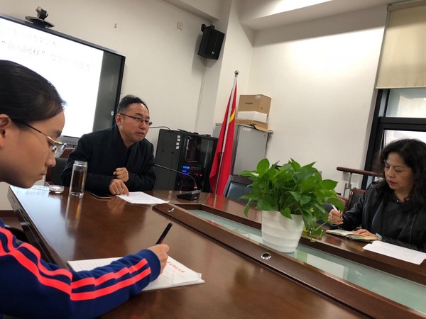 的老师和同学们齐聚外语楼319会议室,共同聆听了来自西安外国语大学中国语言文学学院的韩伟教授主讲的题为“‘强制阐释’的学理性思考”的讲座。