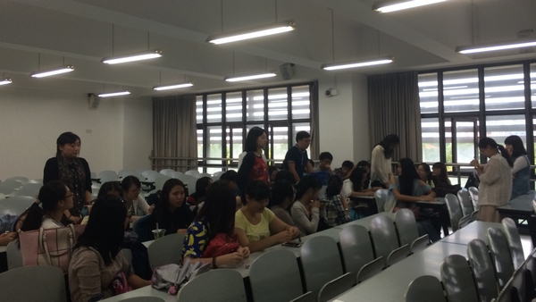 活动在清爽的雨后空气中拉开序幕。在辅导员叶青老师和周俊辰及几位班长的组织下,同学们纷纷自报家门,用简洁精练的语言介绍自己。熟悉了彼此后,大家开始一场“数7”活动,这是一场考验参与同学反应速度的游戏,快速而紧张的节奏唤起了大家的积极性,而有几位不幸失败的同学则在大家的掌声中亮出了自己的才艺:唱歌、谜语,以及方言……然后,同学们分成两拨,进行“国王”游戏,被“国王”点到的同学一样将自己的歌喉贡献给大家。14:20分左右,组织的活动结束,大家在教室里分散开来,拿出早就准备好的桌游,三五成群地玩着游戏,欢笑声此起彼伏,教室内外洋溢着快乐。