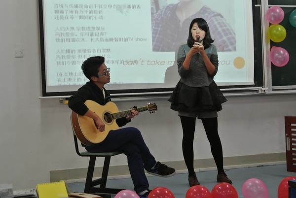 在这个高手云集的舞台上,进行了一场又一场的激烈的对决,显示了一种又一种的演唱风格,给予观众无与伦比的视听享受。比赛共分三轮,每一轮比赛都惊心动魄,大家都使出浑身解数来征服评委与观众的耳朵现场欢呼不断、掌声不断,并且许多选手都已经有了相当一部分的“骨灰级”粉丝!最终13级法语系袁思雨、14级法语系沈剑锋以及14级日语系沈聪分别荣获第一、二、三名。在比赛过程中,穿插了许多精彩的小游戏,包括歌词接龙以及猜歌名,同时还有上一届十佳歌手比赛最具人气选手——来自13级中文系的朱馨怡为大家演唱,缓解了比赛的紧张气氛。