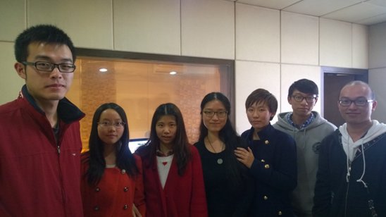 王丹丹、许玲两位老师,来自六个语种的7位同学进行了2015年新年配乐诗歌朗诵作品的录制工作。这也是继2014年新年配乐诗歌朗诵作品集后的又一次创作。