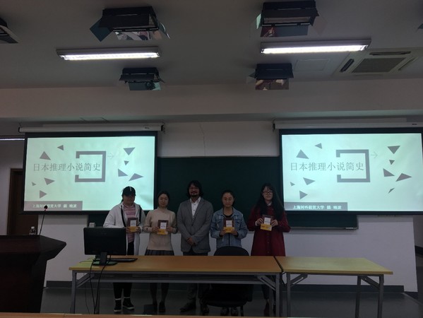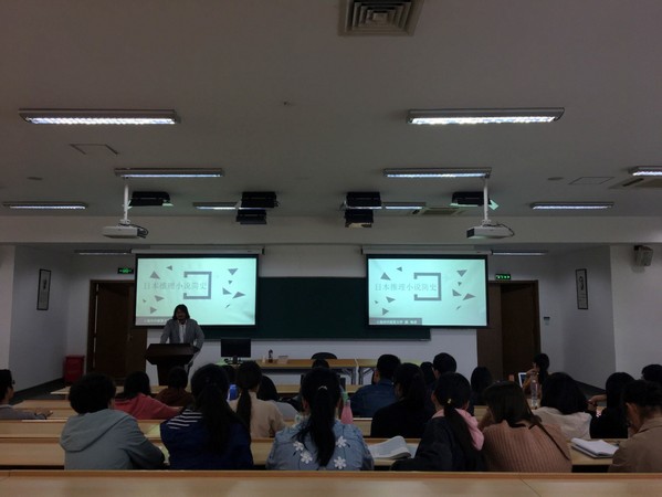 师生外,还有许多外系同学慕名而来参加。提问互动时气氛十分活跃,参会者就日本推理流派、中国推理文学现状以及对未来的展望等等向主讲者提问,钱老师一一回应,并表达了自己对未来中国文坛有一天总会回归到纯文艺的期待。同时提到,一直以来,属于大众文学的推理文学尽管有着庞大的读者群,但对其深入研究的人少之又少,中国内更是寥若晨星这一现状。讲座结束后钱老师将自己翻译的著作慷慨地赠给同学。表达希望通过今天的讲座,今后会出现更多的关注推理小说,研究推理小说的新生代出现。