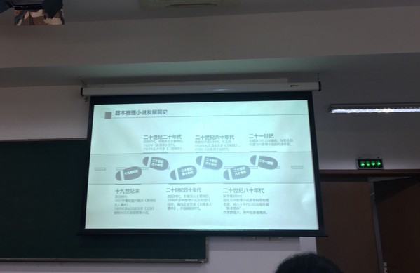 在梳理日本推理小说发展历史的过程中,钱老师穿针引线般从社会背景出发分析推理小说的发展历史,分析了为何新流派萌芽同旧流派逐渐式微。战争的动荡不安,使得日本社会矛盾突出,应时而生的便是注重人的变态心理、揭示社会矛盾等猎奇的变格派推理小说;战后时局渐稳,然而战争创伤仍残存,相应的诸如《零的焦点》《人间的证明》等关注战后人们心灵创伤的社会派推理兴起;到如今,社会逐渐安定,矛盾不再似从前那般突出,主流又回归到本格派,衍生出新本格派推理流派,对于人性的描写也稳定在社会派推理流派,逐渐呈现回归到纯文艺的倾向。钱老师再一次强调社会背景对文学文本创作的影响,同时提示推理小说作为文本资料对于研究日本社会具有重要价值。